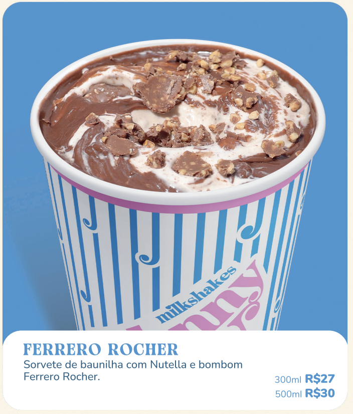 Café solúvel em pó, Nutella, sorvete de baunilha finalizado com chocolate em pó por cima.